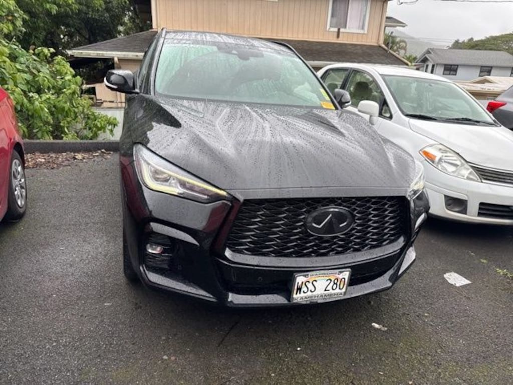 New Price! Black Obsidian 2023 INFINITI QX50 SPORT FWD CVT I4 Fresh oil change, *Permaplate paint protected*, QX50 SPORT, 4D Sport Utility, I4, CVT, FWD, Black Obsidian, Graphite Leather, 12 Speakers, 4-Wheel Disc Brakes, ABS brakes, Air Conditioning, Alloy wheels, Auto High-beam Headlights, Bose Premium Audio System, CD player, Climate Controlled Front Bucket Seats, Delay-off headlights, Four wheel independent suspension, Front Bucket Seats, Front fog lights, Fully automatic headlights, Heated door mirrors, Heated front seats, Literature Kit, Memory seat, Navigation system: INFINITI InTouch Navigation, Passenger door bin, Power driver seat, Power Liftgate, Power moonroof, Power windows, Remote keyless entry, Security system, Speed-sensing steering, Spoiler, Steering wheel mounted audio controls, Traction control, Turn signal indicator mirrors, Wheels: 20" Black Painted Machine Finished.