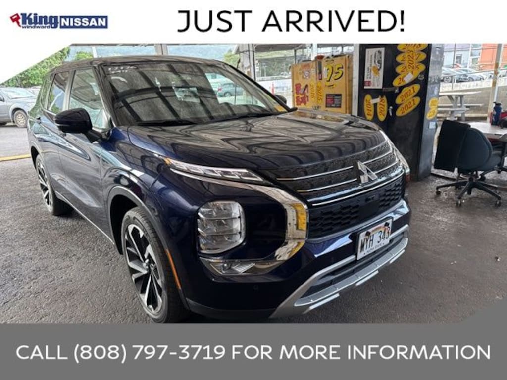 Dark Blue 2024 Mitsubishi Outlander SE FWD CVT 2.5L 4-Cylinder DOHC Fresh oil change, *Permaplate paint protected*, Outlander SE, 4D Sport Utility, 2.5L 4-Cylinder DOHC, CVT, FWD, Dark Blue, 3rd row seats: split-bench, 6 Speakers, Air Conditioning, AM/FM radio: SiriusXM, Auto High-beam Headlights, Emergency communication system: Mitsubishi Connect w/ 24-month trial, Exterior Parking Camera Rear, Four wheel independent suspension, Front fog lights, Fully automatic headlights, Heated Front Bucket Seats, Leather steering wheel, Navigation System, Panic alarm, Power driver seat, Power Liftgate, Power windows, Radio: AM/FM 9.0" Navigation w/Smartphone Link, Reclining 3rd row seat, Remote keyless entry, Security system, Spoiler, Steering wheel mounted audio controls, Telescoping steering wheel, Traction control, Wheels: 20" Two-Tone Alloy.