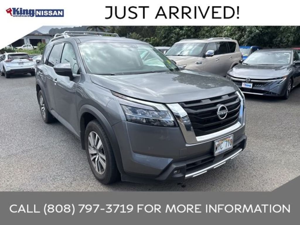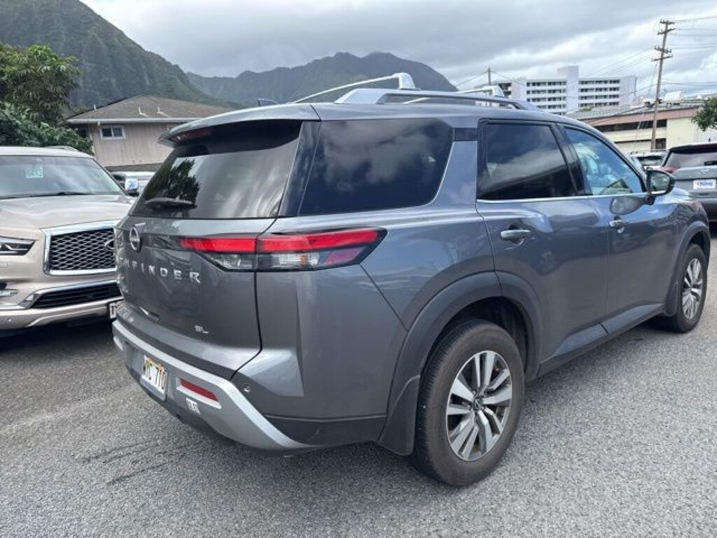 Gun Metallic 2023 Nissan Pathfinder SL FWD 9-Speed Automatic V6 Fresh oil change, Pathfinder SL, 4D Sport Utility, V6, 9-Speed Automatic, FWD, Gun Metallic, Charcoal Leather, 18" Machined Alloy Wheels, 4-Wheel Disc Brakes, 6 Speakers, ABS brakes, Air Conditioning, AM/FM radio: SiriusXM, Auto High-beam Headlights, Brake assist, Cargo Area Protector, Cargo Net, Cargo Package, Cross Bars, Delay-off headlights, Electronic Stability Control, Exterior Parking Camera Rear, First Aid Kit, Four wheel independent suspension, Fully automatic headlights, Heated front seats, Illuminated Kick Plate, Leather Seating Surfaces, Lighting Package (N92), Navigation system: NissanConnect Navigation, Power driver seat, Power Liftgate, Power passenger seat, Power windows, Reclining 3rd row seat, Remote keyless entry, Steering wheel mounted audio controls, Welcome Lighting.