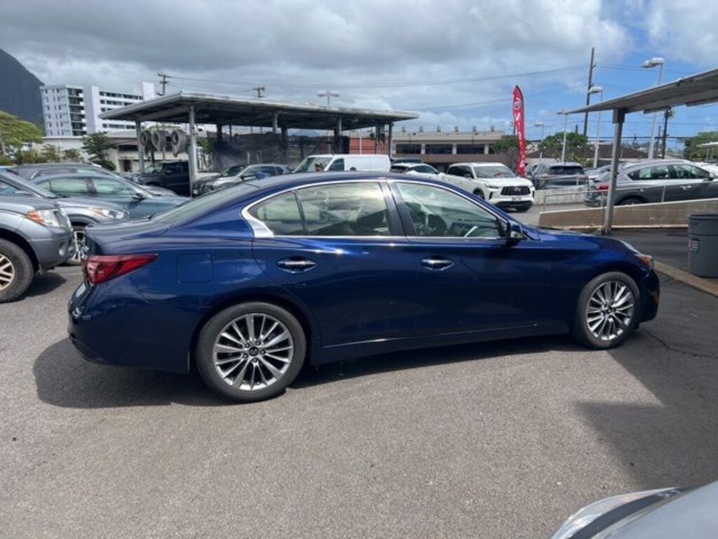 Equipped with a powerful twin-turbo V6 engine, the Q50 LUXE offers exhilarating performance with smooth handling. Inside, youll find leather-appointed seating, a power moonroof, and dual touchscreen displays with Apple CarPlay, Android Auto, and INFINITI InTouch services. Safety features include Blind Spot Warning, Intelligent Cruise Control, and Automatic Emergency Braking for added peace of mind.